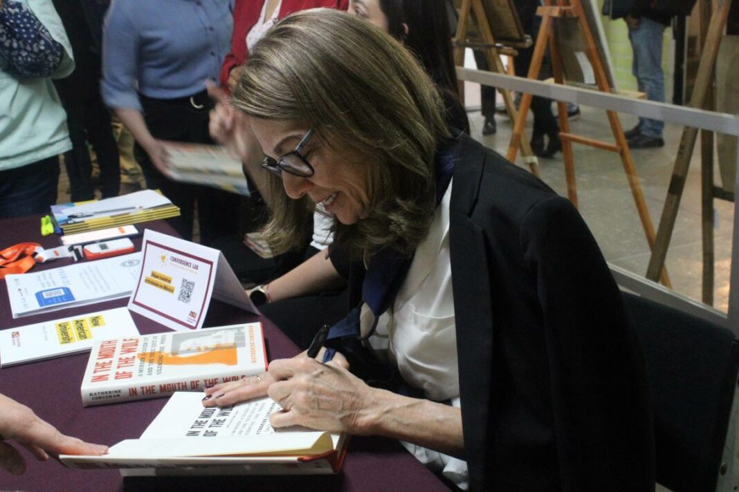 Katherine Corcoran en la presentación de su libro, «En la boca del lobo». Foto: Alexis Rojas.