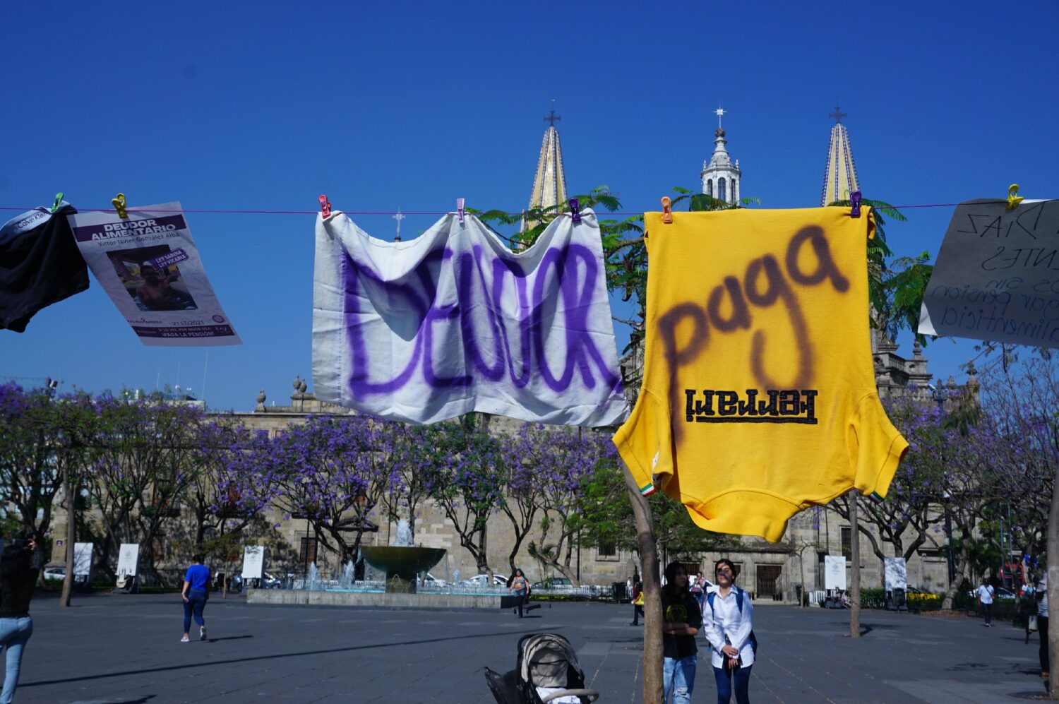 Con un tendedero de rostros y nombres, madres y mujeres que luchan contra la violencia vicaria en Jalisco exhibieron a los progenitores de sus hijos e hijas, quienes durante algunos años -incluso, en algunos casos, desde antes del nacimiento de las y los menores de edad-, se han negado a cumplir con sus responsabilidades afectivas, de cuidado y económicas.