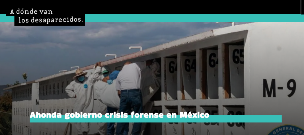 En septiembre de 2020, A dónde van los desaparecidos documentó la crisis forense que enfrentaba el país, con más de 38,500 cuerpos sin identificar en unidades del Servicio Médico Forense (Semefo), funerarias, escuelas de medicina y fosas comunes.