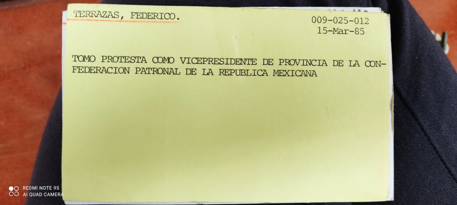 PODER tuvo acceso exclusivo a toda la documentación federal respecto a los actos de inteligencia militar provenientes de la ya extinta Dirección Federal de Seguridad (DFS), en específico de quienes integran esta afiliación empresarial, el CMN. En dichos documentos, resalta un nombre que inmediatamente podemos relacionar con la política en el Estado de Chihuahua pero que afectó a todo el país, Federico Terrazas.