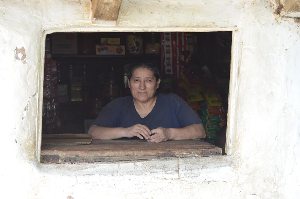 Es adulta mayor, jefa de familia en un hogar donde su esposo tiene alzheimer y su hija es ciega. Él paseaba entre los ciruelos del patio y la orilla del río; ella, ayudaba con una pequeña tienda donde lo que más vendía eran dulces, pero pos ya ni a quién venderlos.