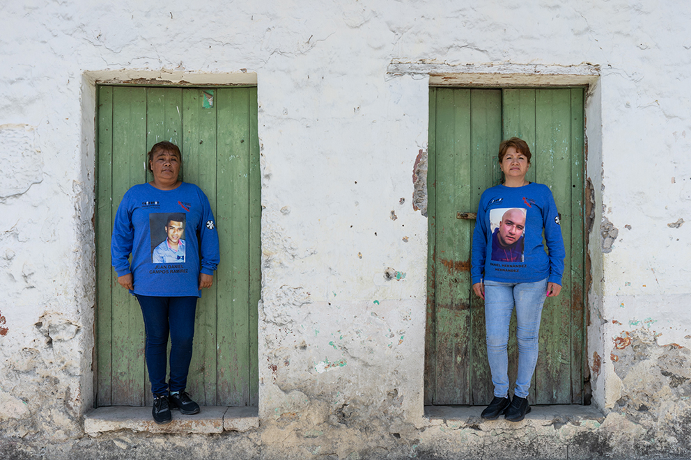 “Las señoras son del Colectivo Justicia y Dignidad Veracruz. Ellas están buscando a sus familiares desaparecidos, por eso están aquí”. Les explica a los hincados en sandalias o en sus tenis Nike.