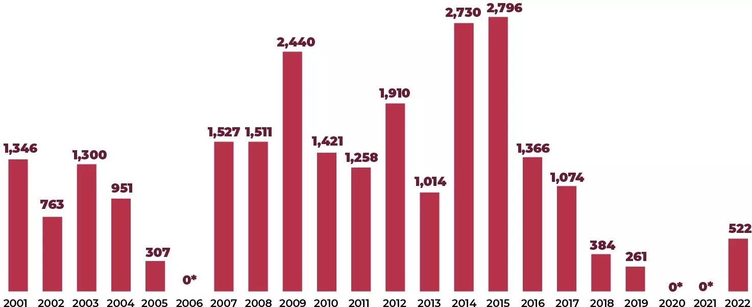 De acuerdo con respuestas a solicitudes de información, 19 mil 77 niñas, niños y adolescentes han sido atendidos por heridas de bala en hospitales estatales y del Instituto Mexicano del Seguro Social (IMSS) entre 2006 y 2022. Eso quiere decir que en promedio 3 niños, niñas o adolescentes fueron atendidos diariamente por heridas de bala en México.