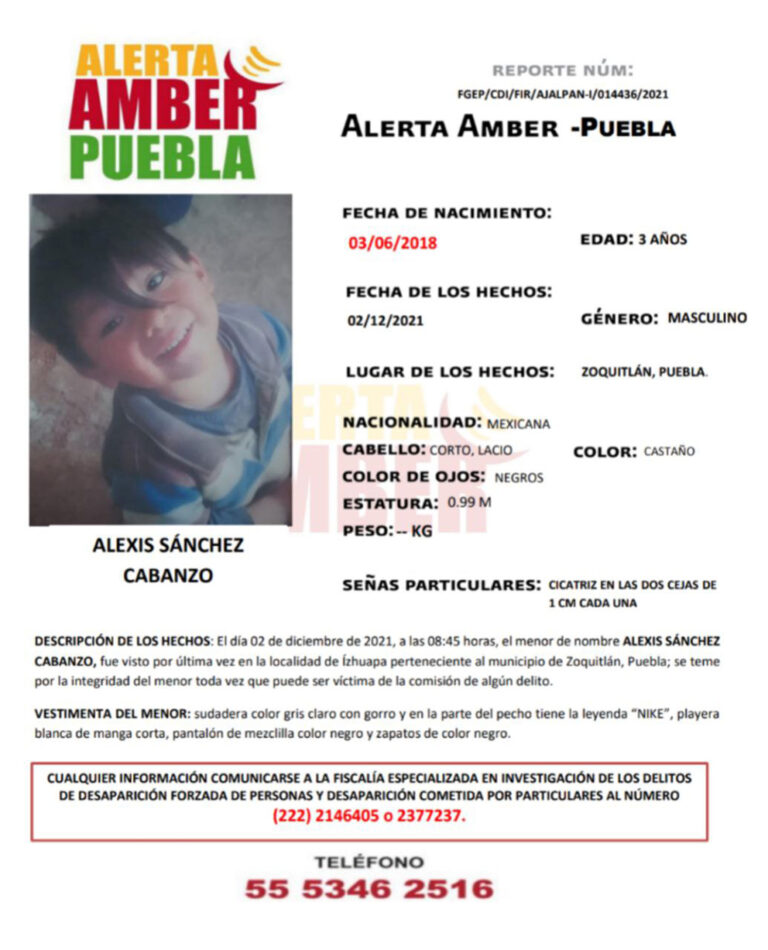 Tras la desaparición el 2 de diciembre de 2021 de Alexis Sánchez Cabanzo, la Fiscalía General del Estado de Puebla (FGEP) esperó 54 días para activar la Alerta Amber, y la investigación se ha realizado sin una planeación y sin considerar los impactos a la familia y la comunidad. Esto ocurre cuando el Sistema Nacional de Protección Integral de Niñas, Niños y Adolescentes (Sipinna) está en riesgo de ser convertido en una unidad administrativa del Sistema Nacional para el Desarrollo Integral de la Familia (DIF), vulnerando aún más los derechos de las infancias.