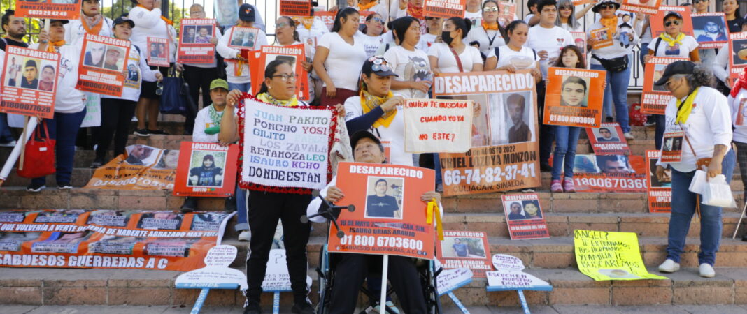 “¿Cómo no voy a venir si no hay quién me lo devuelva?”, dice la mujer a la que sus compañeras, un grupo de más de 50 mujeres que forman parte del colectivo Sabuesos Guerreras, le llevaron una silla de ruedas para cruzar el Centro de Culiacán hasta llegar a la Fiscalía General como protesta. Esta es una agrupación que se fundó en 2017 para buscar a personas desaparecidas en Sinaloa. Ese año podía contarse unas 3 mil, ahora son casi 7 mil víctimas en esa misma situación.
