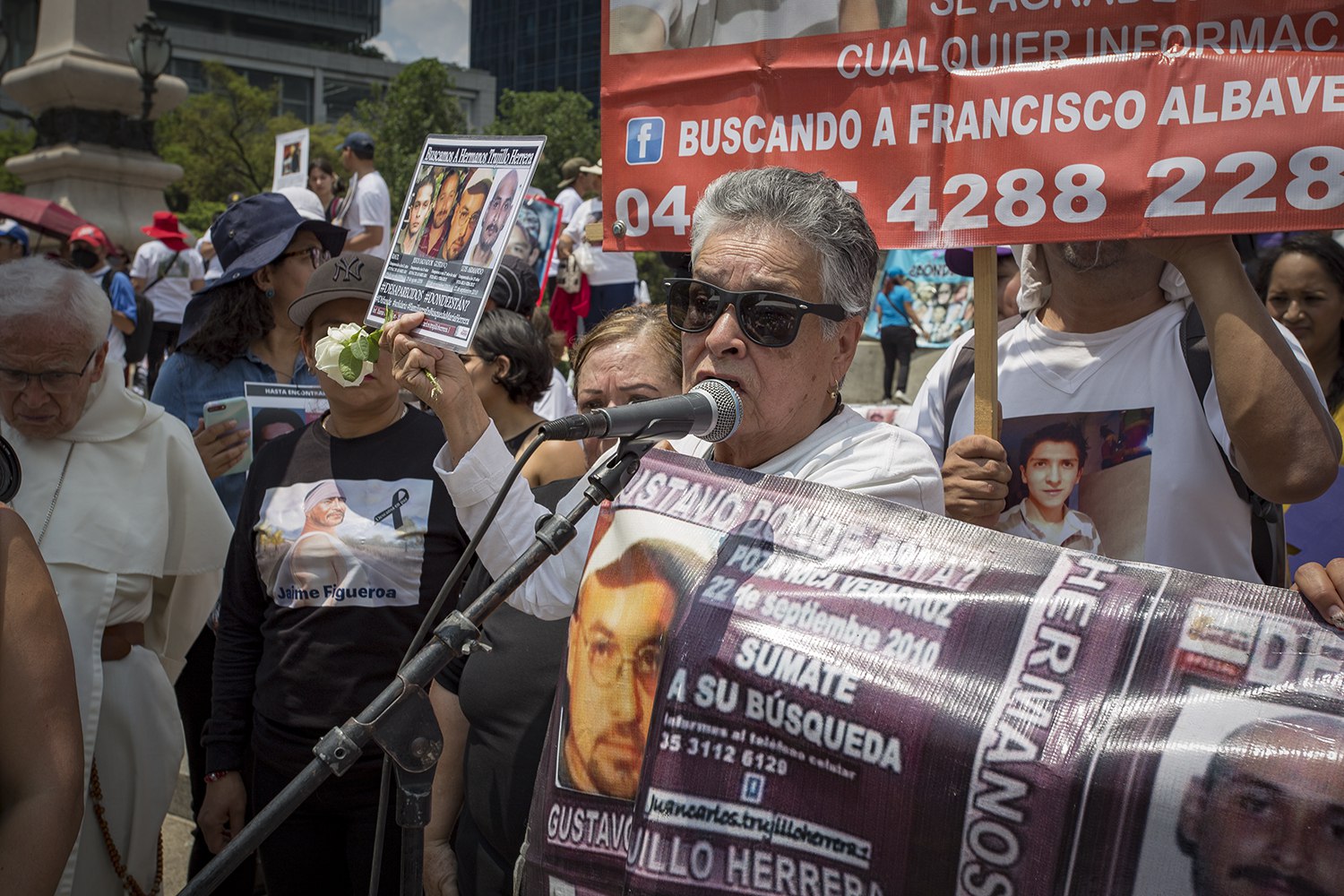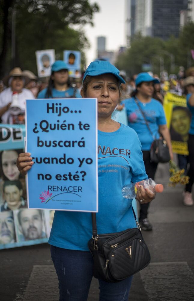“Estoy aquí en esta marcha pidiendo para que aparezca mi hjo con vida, han pasado 4 meses y no tenemos ninguna información sobre su paradero. Nunca me ha gustado festejar el dia de la madre y hoy que he perdido a un hijo me duele muchisimo ser la madre de un desaparecido. Creo que tenemos que unirnos para poder exigir que las busquedas y las investigaciones sean más efectivas.”