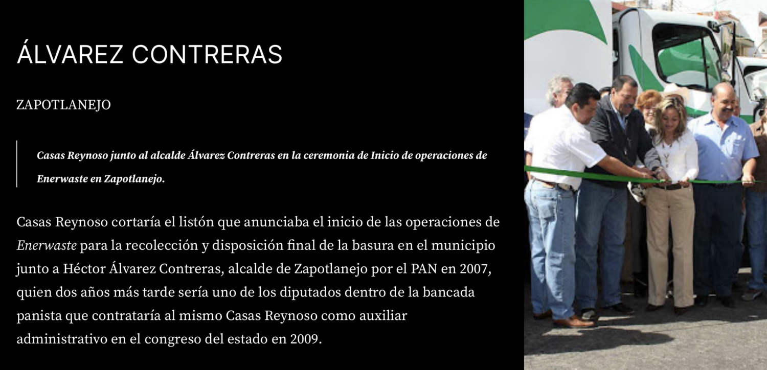 Casas Reynoso también asesoró en el congreso a la bancada panista cuyos miembros fueron alcaldes encargados de darle concesiones para el manejo de la basura a su empresa.