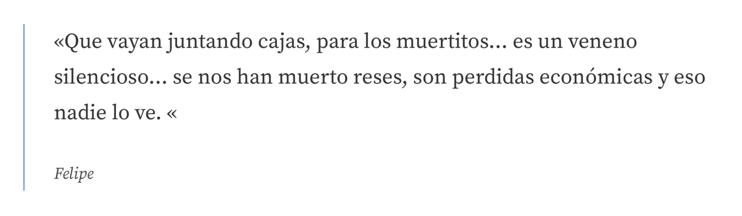 “Se vuela todo el bolserío y cuando cortamos la milpaen lugar de darles tenemos que encerrar a los animales en el corral, para juntar toda esa bolsa, ¡sino se comen las bolsas! se nos han muerto muchas vacas”, precisó Don Luis, 75 años