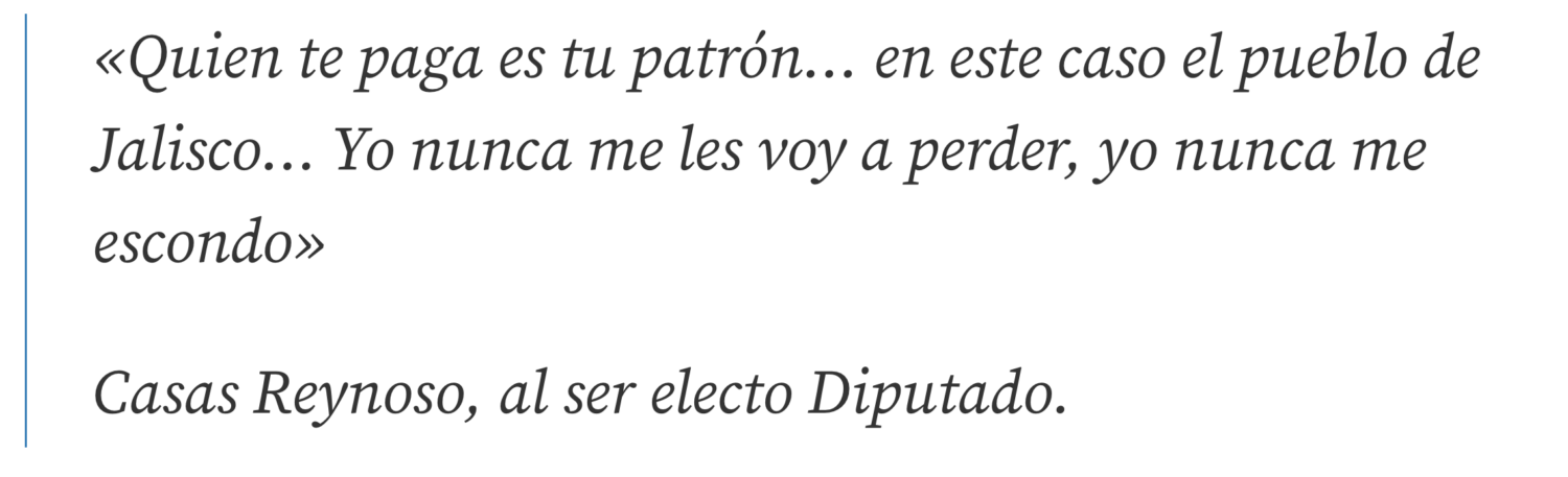 Esta falta de transparencia por parte de Casas Reynoso ante los ciudadanos se contrapone, durante todo este tiempo, al hecho de que su esposa ha sido socia de la empresa Enerwaste concesionada en tres municipios de Jalisco.
