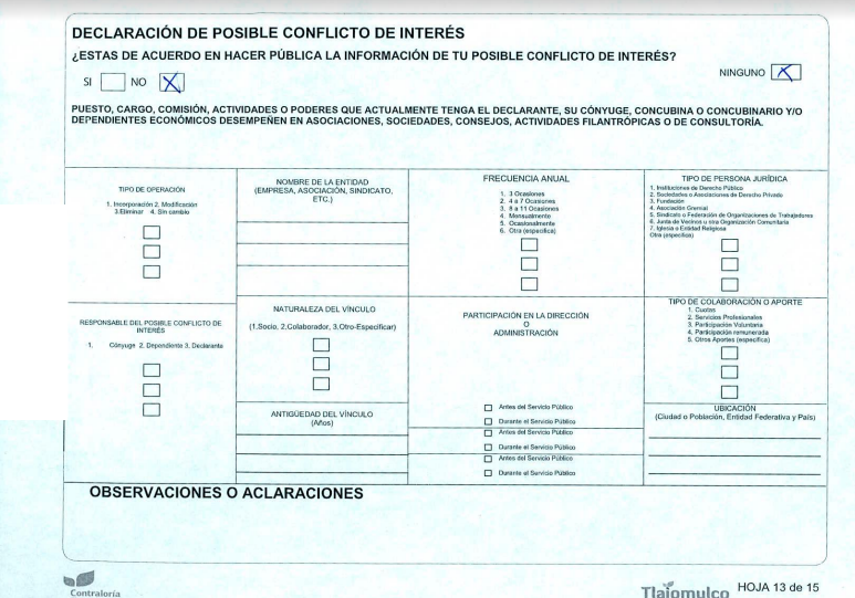 La sociedad civil a través de esfuerzos como la iniciativa 3 de 3, han sugerido la publicación de las declaraciones patrimonial, fiscal y de conflicto de interés de todos los candidatos.