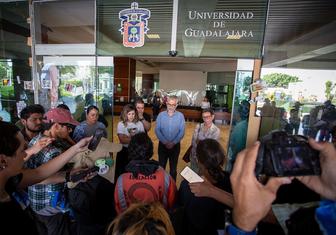 Sin embargo, el Rector General, Ricardo Villanueva, no se encontraba en el lugar en ese momento, por lo que Guillermo Arturo Gómez Mata, Secretario General de la universidad, recibió a una representación de estudiantes.