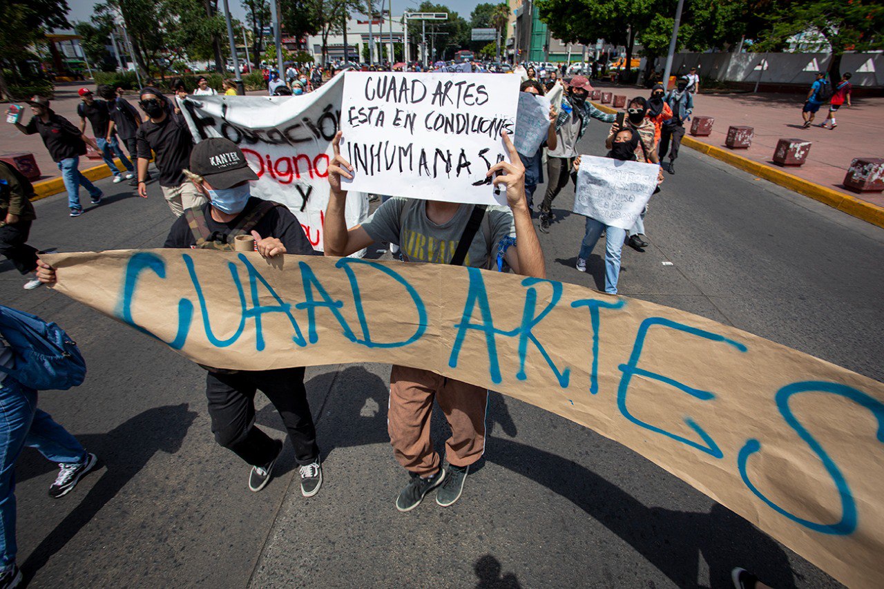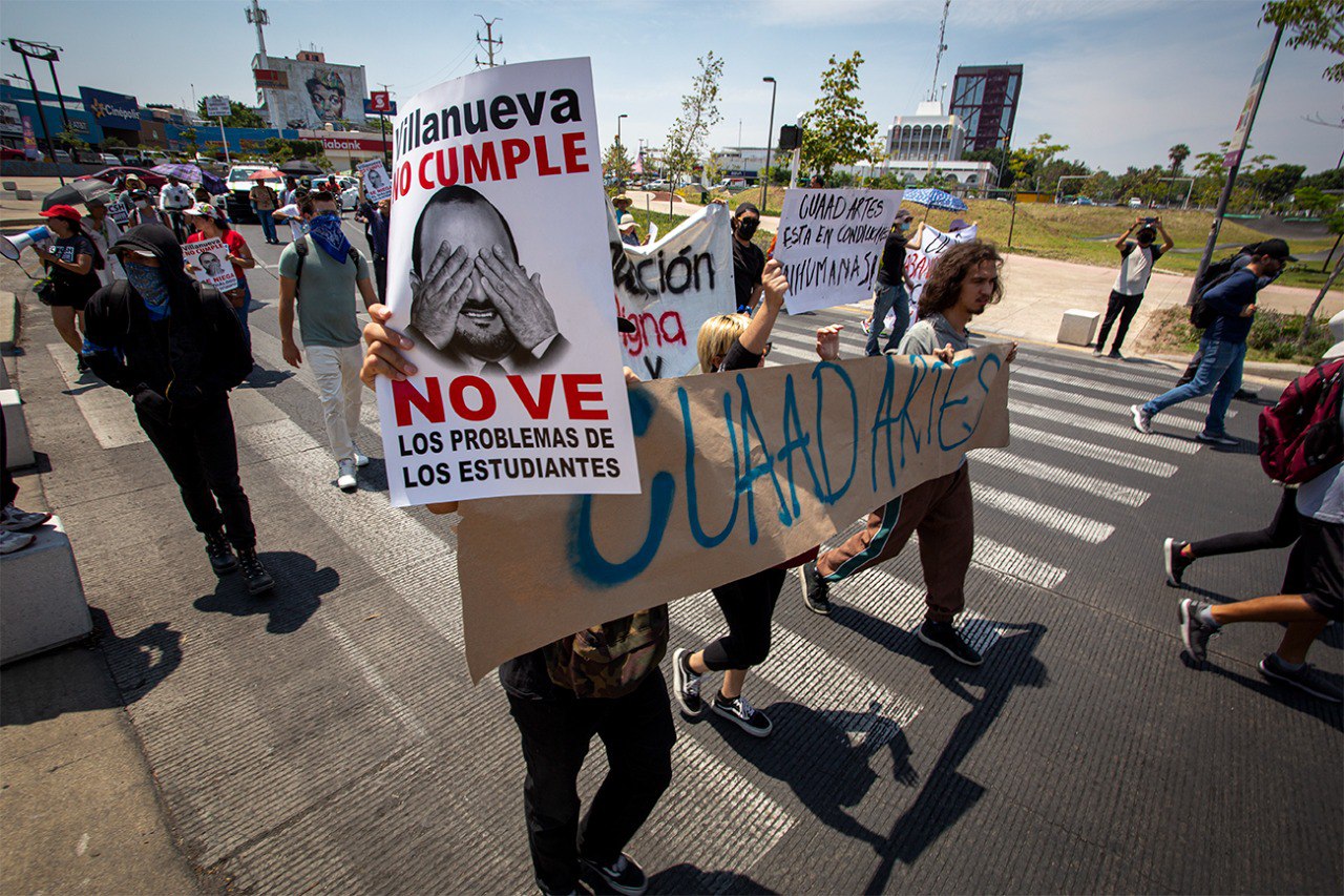 La Marcha por la Dignificación Estudiantil convocó a estudiantes de todos los centros universitarios de la UdeG, quienes se solidarizaron con la demanda del #CUCSHNoSe Mueve. El contingente marchó desde el campus del CUCSH, donde mantiene un paro de más de 15 días, hasta las instalaciones de la Rectoría General de la Universidad de Guadalajara, donde esperaban entrevistarse con el Rector Ricardo Villanueva Lomelí y presentarle un pliego petitorio.
