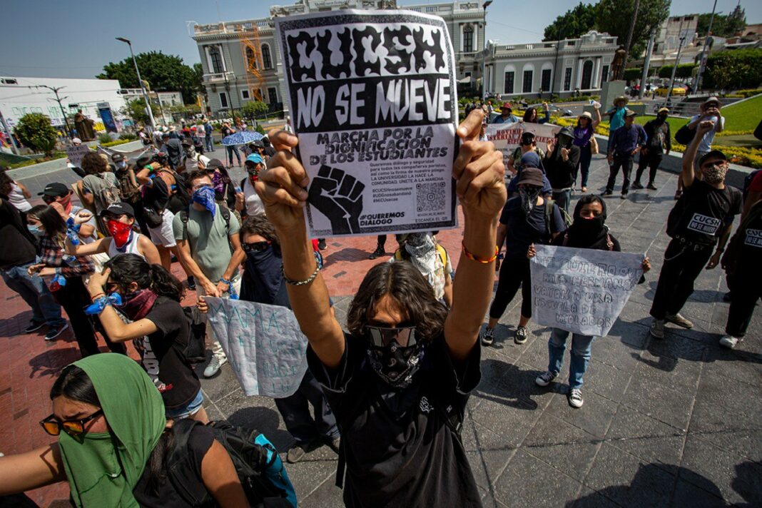 Cientos de estudiantes del Centro Universitario de Ciencias Sociales y Humanidades (CUCSH) de la Universidad de Guadalajara (UdeG) se movilizaron en una marcha con la consigna “CUCSH no se mueve”. La protesta tuvo como objetivo exigir la permanencia de la División de Estudios Históricos y Humanos en el campus La Normal y rechazar el cambio propuesto hacia Belenes.