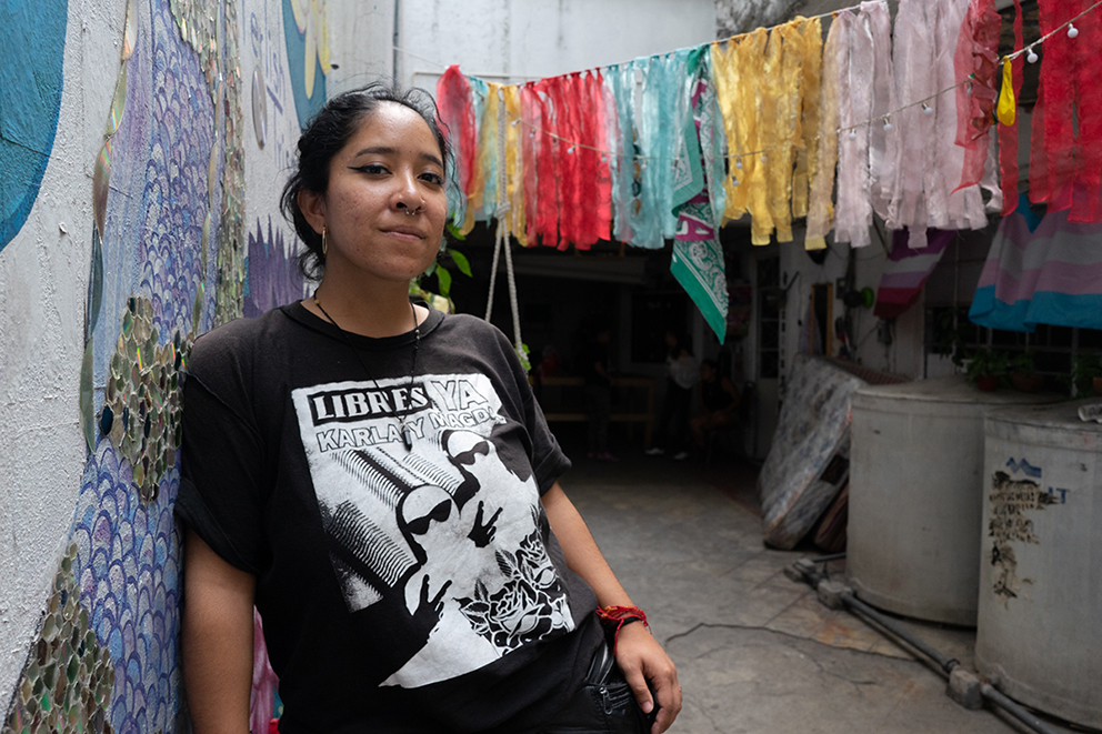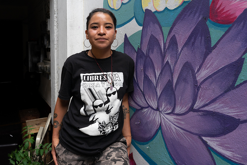 Magda llegó el 29 de marzo de 2022 a la Okupa porque su ex pareja intentó asesinarla con un cuchillo. La joven quedó en shock al ver más de 200 elementos golpeando la puerta y amenazándolas, “ya las chingamos”, les gritaron desde afuera.