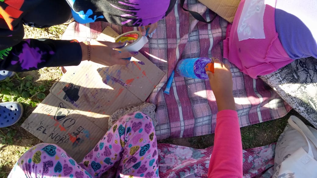 Como equipo de trabajo, lxs investigadorxs adultxs nos preguntamos acerca de los cómo, los para qué y los cuándo de la participación, teniendo siempre en claro que son procesos no lineales y en ese sentido están cargados de idas y vueltas ya que también estamos en un recorrido de producción de datos con niñxs lo que tiene sus propias complejidades en este espacio en particular y, sumado a ello, las dificultades (que a veces se transforman en oportunidades de creatividad) dado que la realización de las actividades al aire libre, sin ningún tipo de mobiliario suele ser un limitante. Por otro lado, pero de manera paralela a la investigación también nos encontramos en una reflexión constante acerca de cómo intervenir en los conflictos familiares, vecinales, entre lxs niñxs; analizamos también nuestras maneras de realizar transferencias en el territorio y cómo articular con agentes del Estado municipal.