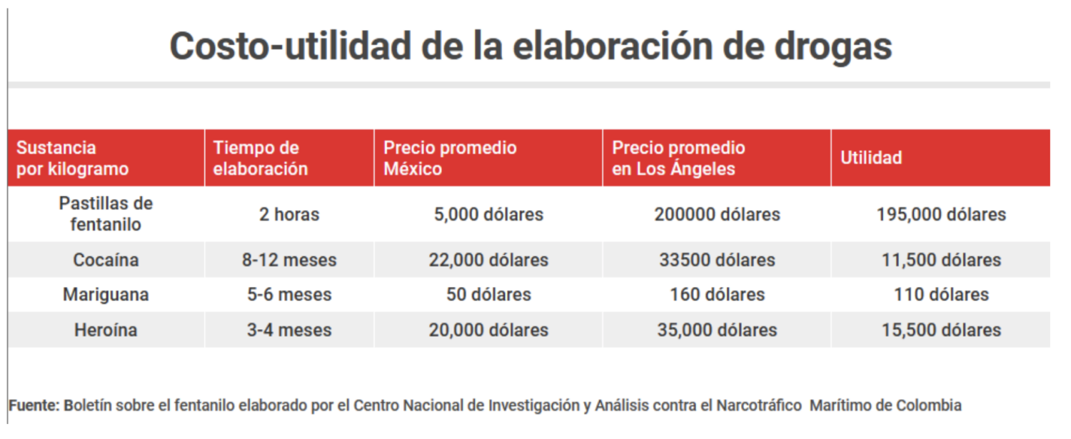 A continuación, podemos visualizar esta relación de costo utilidad elaborado por el Centro Nacional de Investigación y Análisis contra el Narcotráfico Marítimo de Colombia.