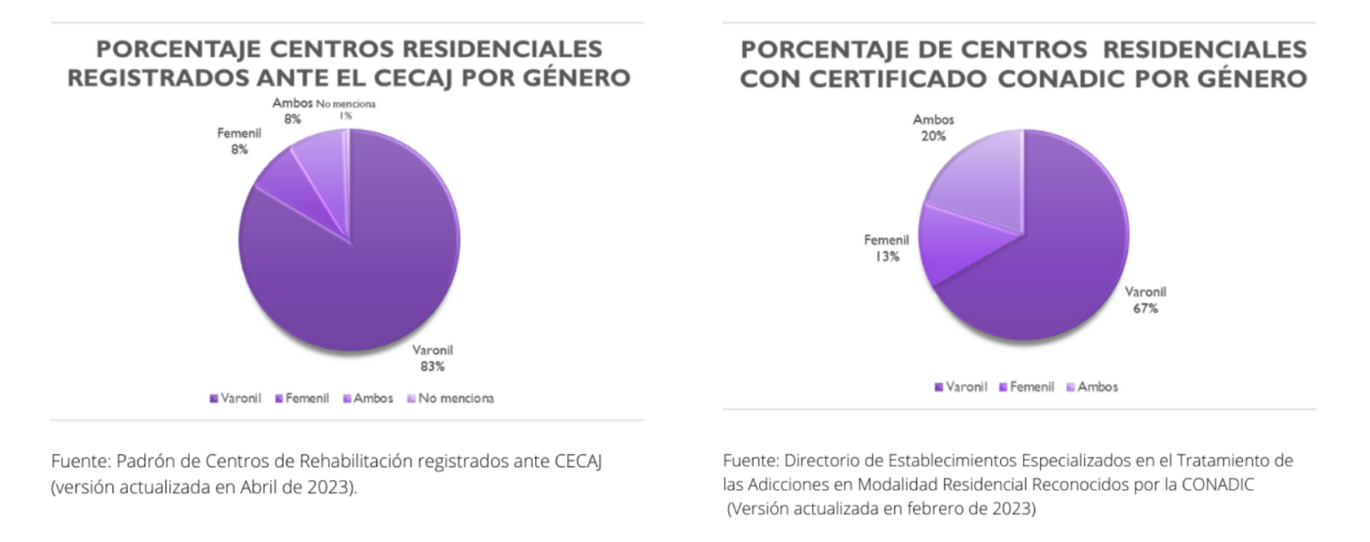 “al no existir suficientes centros residenciales femeniles, las mujeres con adicciones son tratadas en instalaciones mixtas en las que muchas veces son sometidas a violencia sexual, estructural, discursiva y normativa en razón de género.”
