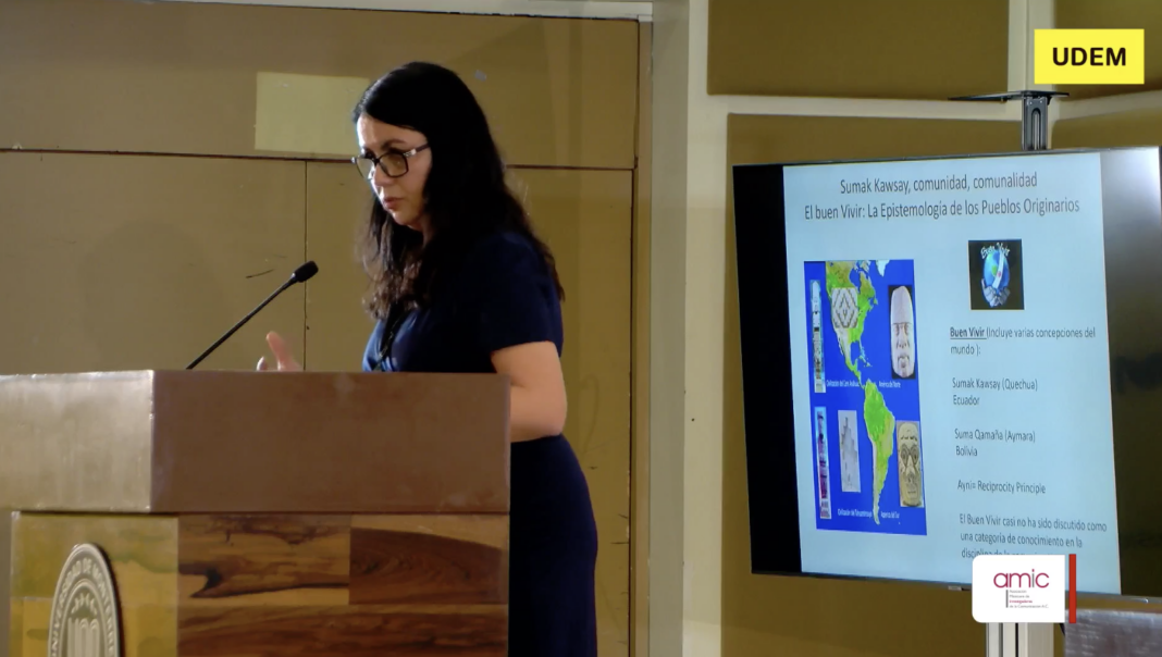 Bajo el título “Fronteras porosas, vecinos distantes: Del derecho a la comunicación y la representación, a la construcción del buen vivir en la sociedad global”, la investigadora explicó cómo ha tenido que abrir brechas para que el estudio sobre las comunidades indígenas migraciones pueda verse y entenderse más allá los prejuicios y estigmas que tienden a criminalizar a esta población.