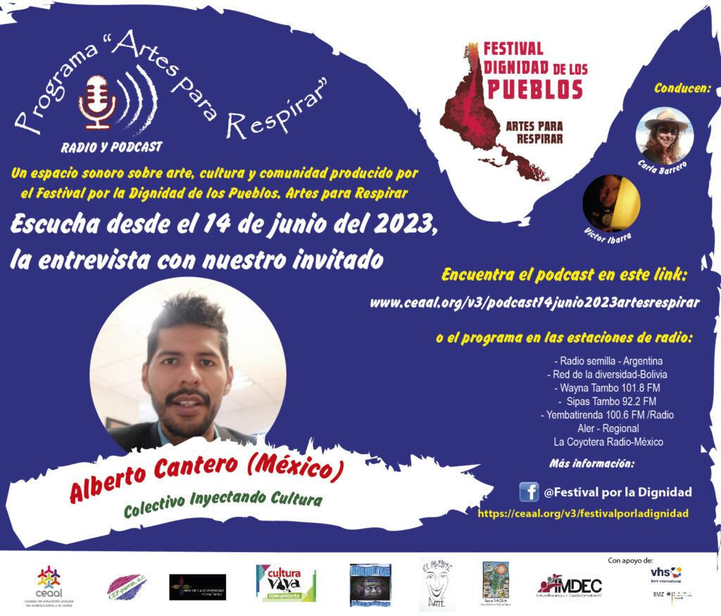 El podcast “Artes para Respirar” es un espacio sonoro sobre arte, cultura y comunidad producido por el Festival por la Dignidad de los Pueblos. Artes para Respirar; en esta ocasión se realizó una entrevistas con Alberto Cantero del Colectivo Inyectando Cultura, quien nos habla sobre la labor comunitaria y cultural que hace este colectivo enclavado en el tradicional barrio de Santa Tere en Guadalajara.