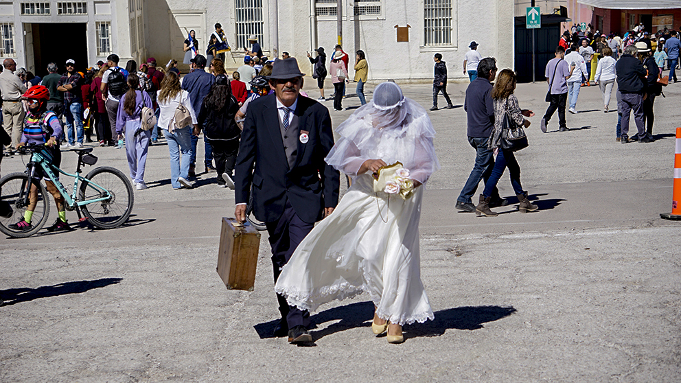 Esperaron su turno frente a alumnos de bachillerato que platicaban, hablaban y se besaban con el tajo de la mina de fondo. Allí estaban Lucho el elegante y Verónica vestida de novia fantasma cubriéndose del sol en la escalinata de la iglesia. En el grupo de Carabineros que esperaban junto a ellos se preguntaron si habría boda o qué estaba pasando.