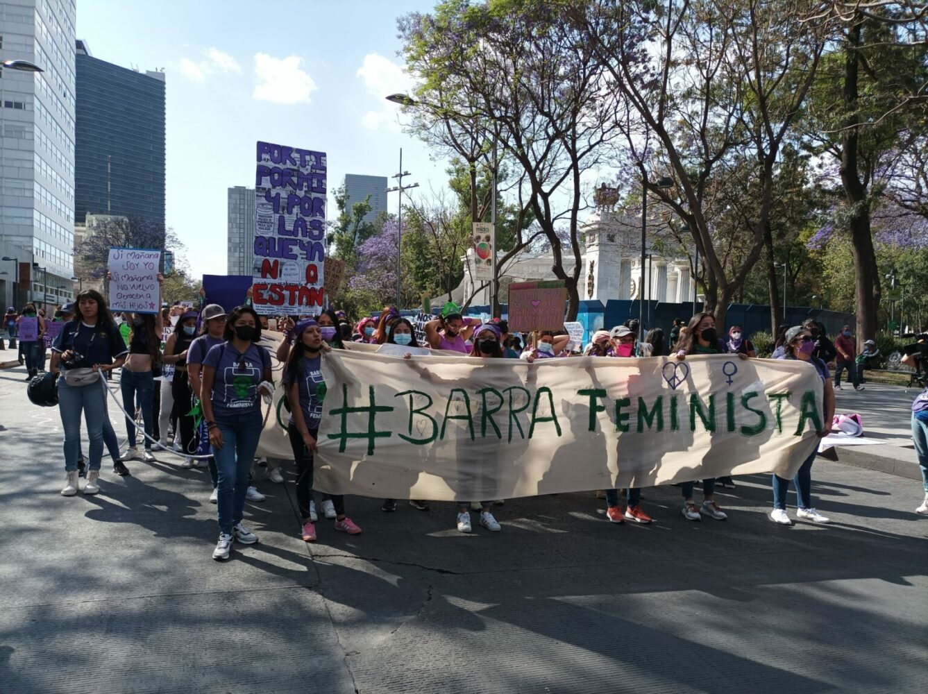 “Vi a la Barra Feminista en el Estadio Olímpico el 14 de marzo, cuando las escuché gritando consignas que me hacían sentido y las vi con sus pañuelos verdes y playeras moradas, me sentí identificada, yo llevaba una manta, porque aún tenía el ímpetu de la marcha del 8M que había sido días atrás; me sentí identificada por la exigencia de mejores salarios y porque se nombraron feministas (…) ese día me acerqué y me uní a sus porras, ese es mi primer recuerdo con ellas”.