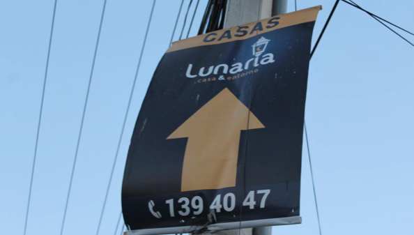 La promoción de desarrollos inmobiliarios invade cada esquina del tercer anillo, a las orillas de la ciudad de Aguascalientes. Fotografía Georgina Macías.