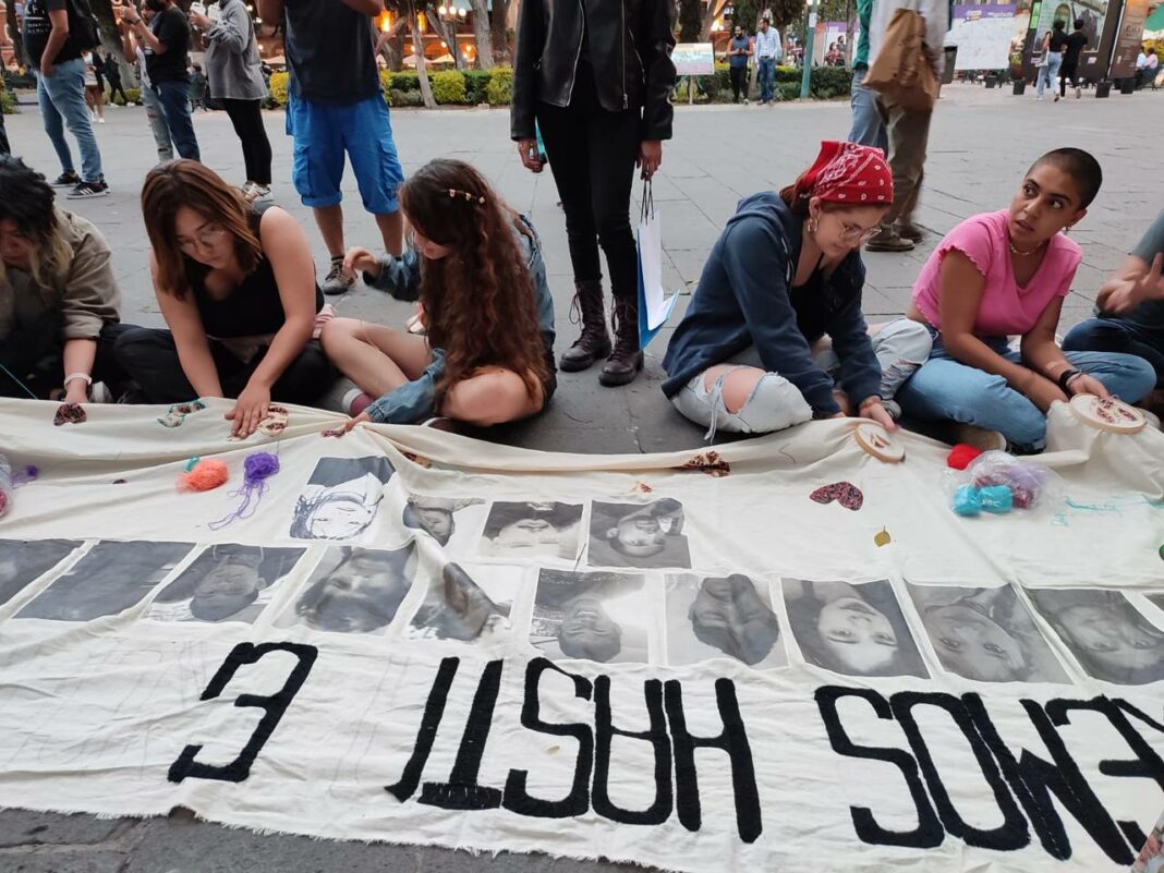 Fabiola Rayas, integrante del colectivo, explicó que la acción consistió en bordar los nombres de toda persona que busque a algún ser querido en el país, esto con el propósito de honrar su trabajo como buscadores y a la par, a sus “amores desaparecidos”.