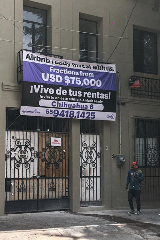 También, la proliferación de Airbnbs en el corazón de la colonia Roma Norte es otro ejemplo. ¿Para quién es la vivienda en la Alcaldía? Basta ver las fachadas de las casas, adornadas con mensajes claramente dirigidos a empresarios más que a ciudadanos de a pie, para respondernos.