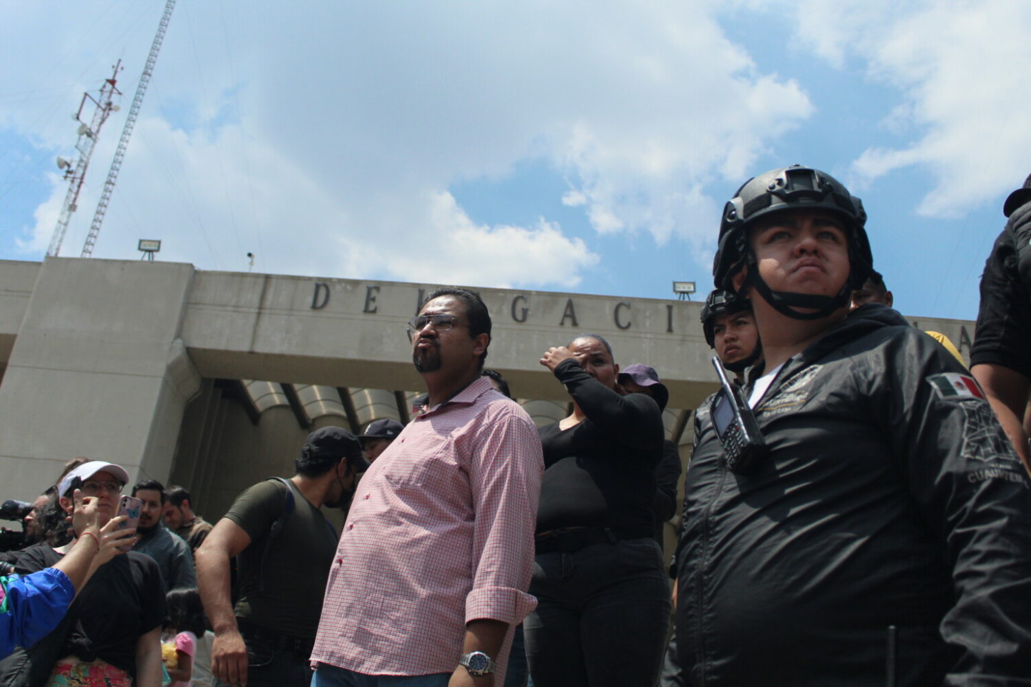 De manera inmediata, los protestantes defendieron a la prensa, “con la prensa no, con la prensa no, si tocan a la prensa no saben como les va”, dando inicio a un largo intercambio de insultos y burlas hacia los uniformados. También se tumbó la placa de identificación del lugar, y se repintaron las consignas cada que estas eran borradas.