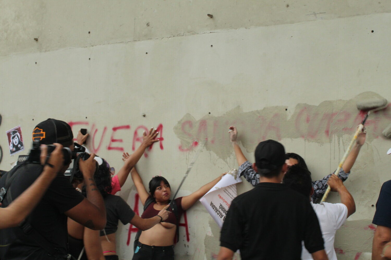 Así mismo, las autoridades gubernamentales, solicitaron a los agentes de limpieza, para eliminar las pintas que los manifestantes hicieron, así como también se quitaron sus carteles que habían colocado anteriormente; sin embargo, se oponían a tales acciones y se colocaban al frente de las pintas para que estas no fueran eliminadas.