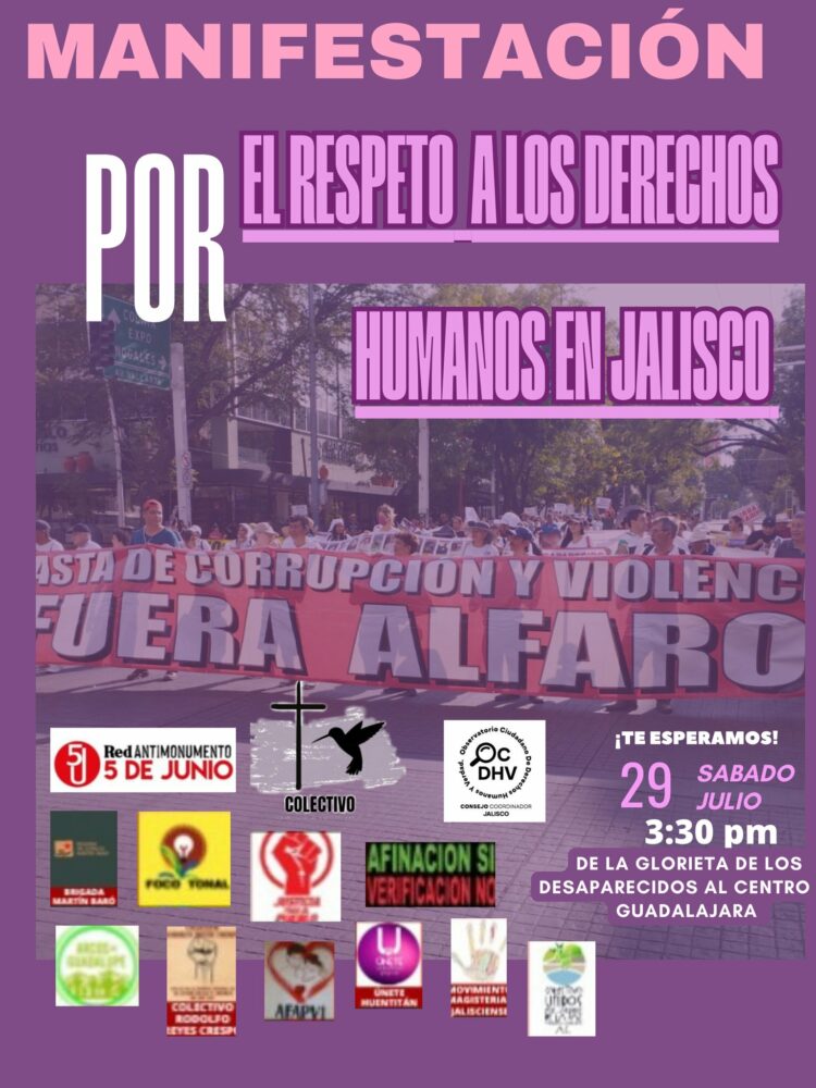 Como una forma de mantener la lucha y festejar este triunfo de la memorial, quienes integran la Red AntiMonumento 5J están convocando a una marcha por los derechos humanos en Jalisco, la cual se realizará el próximo 29 de julio a las 3:30 en la Glorieta de las y los Desaparecidos de Jalisco.
