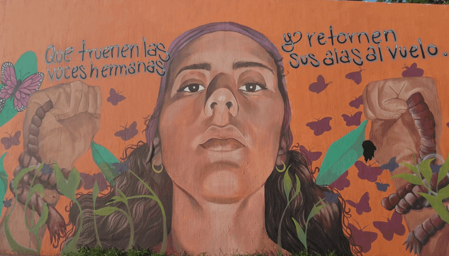 Con una estrategia lo más abarcadora, ni siquiera la mirada más distraída (o más elusiva) puede evitar la cruda realidad del país que se reproduce en la iconoclasia ahí plasmada desde la frustración y el coraje, pero también desde la esperanza, la creatividad y la construcción de vínculos comunitarios, como ejes de lo que constituye una propuesta política transformativa. En esta reconfiguración del espacio, con un ángulo de 360 grados, la mirada viaja de la tierra bajo los pies al cielo y encuentra desde cantos de protesta feminista hasta historias que pueden corresponder a tantas y tantas mujeres en el país.
