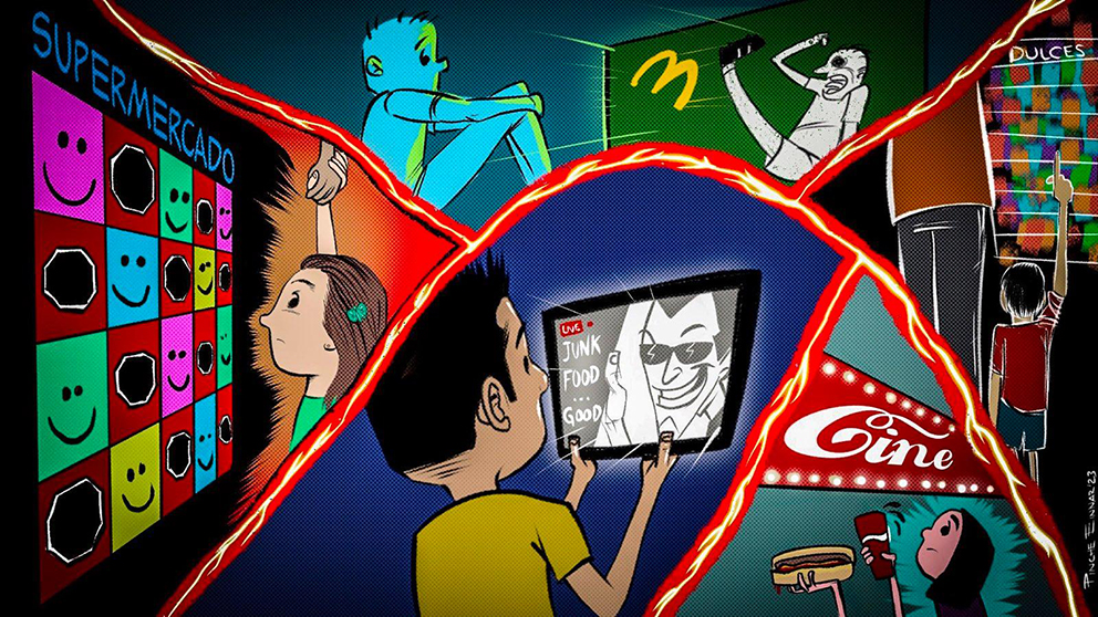 Son divertidos y estimulantes, apelan a emociones gratas y a grandes aventuras; no sólo aparecen en la televisión y en la radio, también están en los estadios, en los cines e incluso en las escuelas. Con las redes sociales y otras plataformas, nadie se escapa del algoritmo que los hace más personalizados y además aparecen más a menudo. Son los omnipresentes anuncios de comestibles chatarra que de manera desproporcionada se dirigen a los infantes y adolescentes.