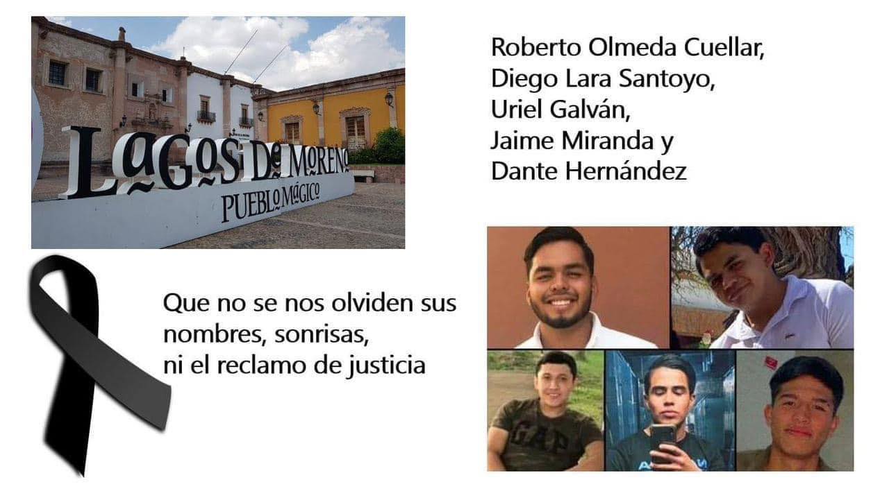 Las desapariciones de Roberto Olmeda Cuellar, Diego Lara Santoyo, Uriel Galván González, Jaime Miranda y Dante Hernández en Lagos de Moreno, Jalisco a diez años de la tragedia del 7 de julio de 2013 dentro del mismo municipio, dejan en evidencia que estos patrones de violencia criminal, desprotección, indolencia y omisión estatal no son nuevas dentro de la región Altos Norte del estado.