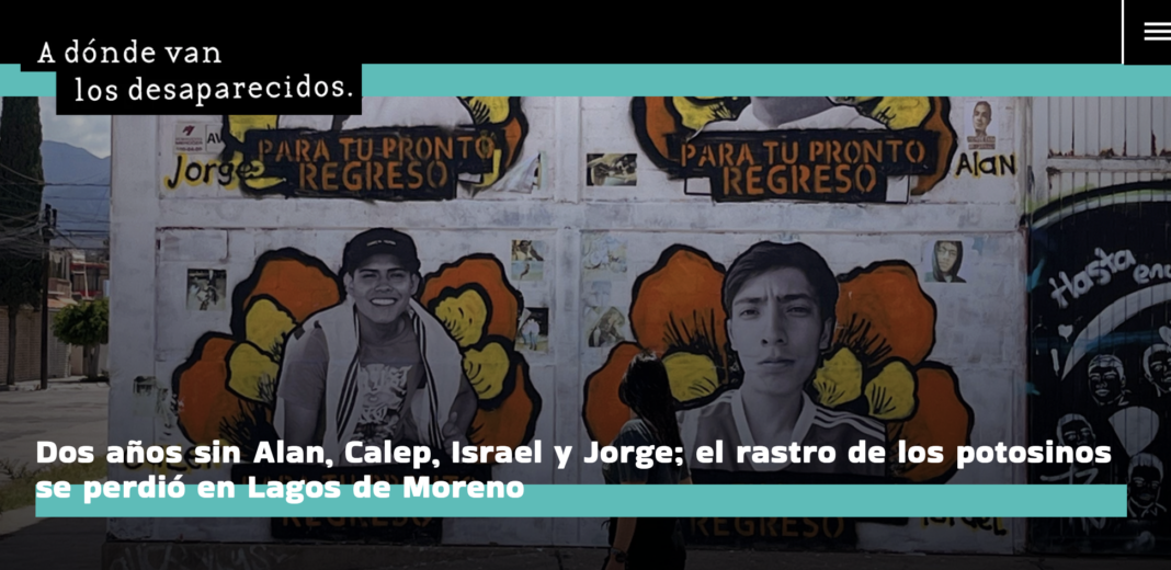 Cuatro jóvenes potosinos que viajaban rumbo a Tonalá, en Jalisco, para trabajar en la construcción de un motel fueron desaparecidos en Lagos de Moreno el 26 de julio de 2021 por integrantes del crimen organizado en colusión con la policía municipal, según la investigación penal del caso. Desde ese día, las familias esperan el regreso de Alan Michel Martínez Vargas, Calep Adonai Maldonado Moncivais, Jorge Rodríguez Ortiz e Israel Andrade Hernández.