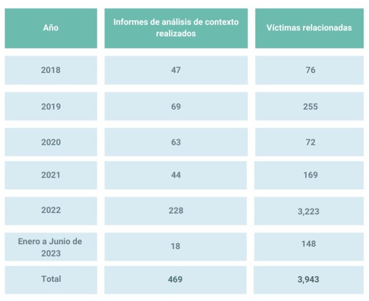 Los datos lanzados aseguran que solo el 4% de las investigaciones realizadas por la FEPD del 2018 a 2023, cuentan con un informe de contexto, es decir, se establecen patrones, modus operandi, puntos de búsqueda o incluso posibles perpetradores.