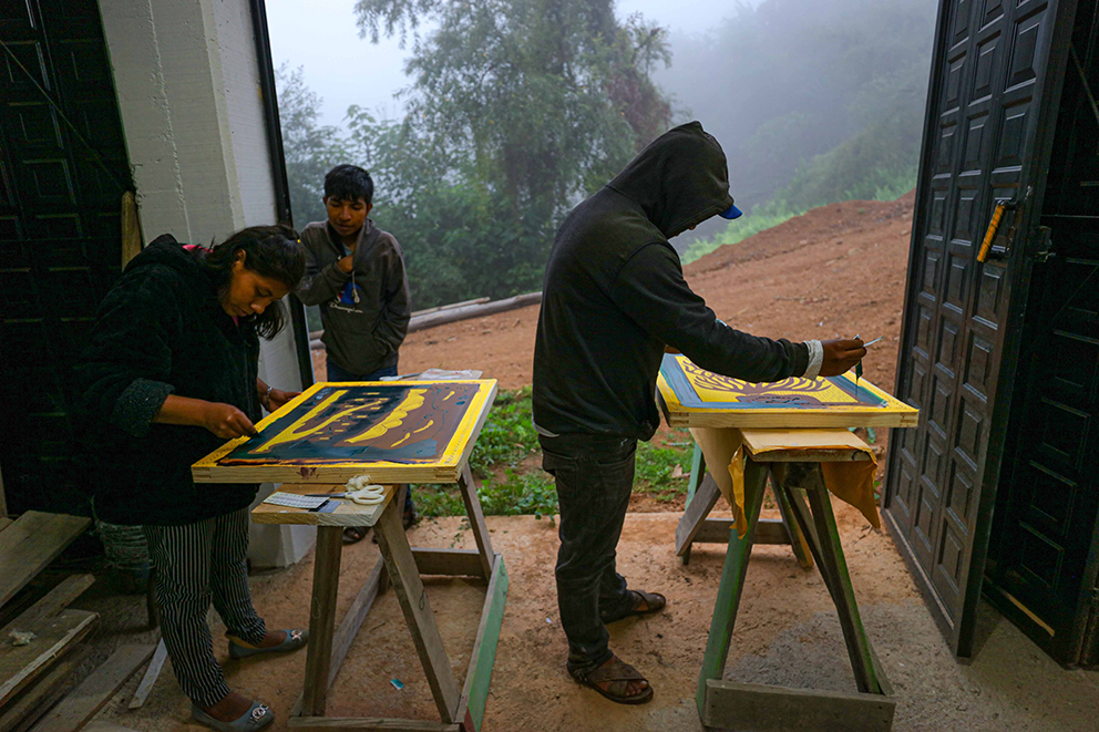 “La finalidad de la cooperativa, primeramente, es unir. La unión entre nosotros, ser solidarios, para poder sacar nuestros trabajos. Y de nuestra cooperativa es hacer conciencia de que si nos unimos entre maestros pintores, podemos llegar más lejos y darle el verdadero valor a nuestra obra”, asegura Jesús Lozano, habitante nahua de Xalitla e integrante de la cooperativa Kan Temachtlakuillocan.