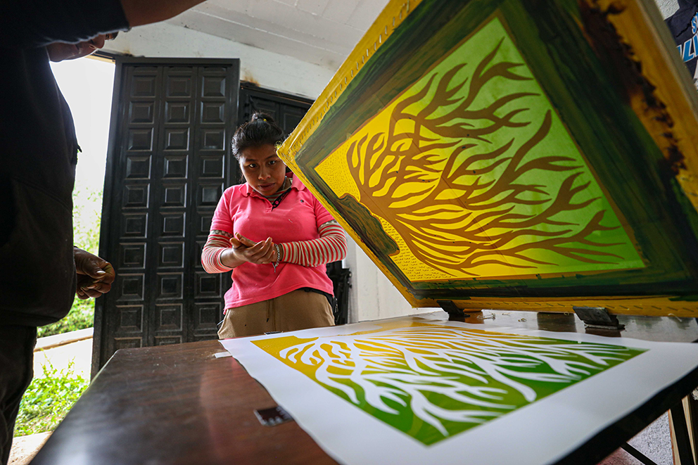 “La serigrafía es una buena manera de expresarse, de decir lo que sentimos. Sin hablar para las personas que a veces nos cuesta sacar las palabras, es una excelente manera de expresarnos. Estamos plasmando cosas de nuestra cultura. Estamos plasmando, palabras colores, símbolos, vestimenta, tradiciones. Plasmamos parte de nosotros”, reflexiona Víctor, quien también es integrante de la cooperativa.