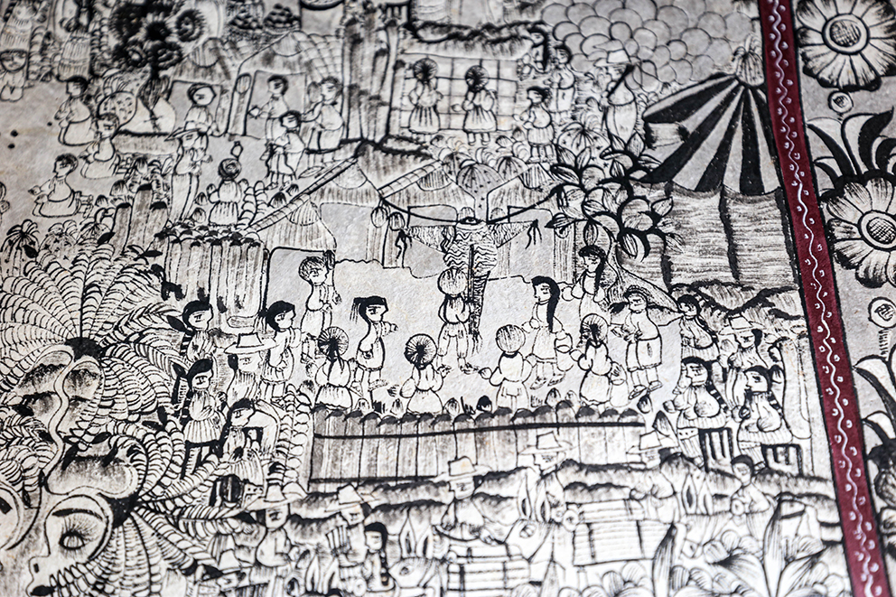 En Xalitla, todas las casas tienen por lo menos una persona que pinta, a veces toda la familia. Desde que llegas, las personas hablan de los ancestros tlacuilos, personas que antes de la invasión española se dedicaban a la pintura y la historia. Fundamentales para la gobernanza mexica, realizaron lo que hoy conocemos como códices.