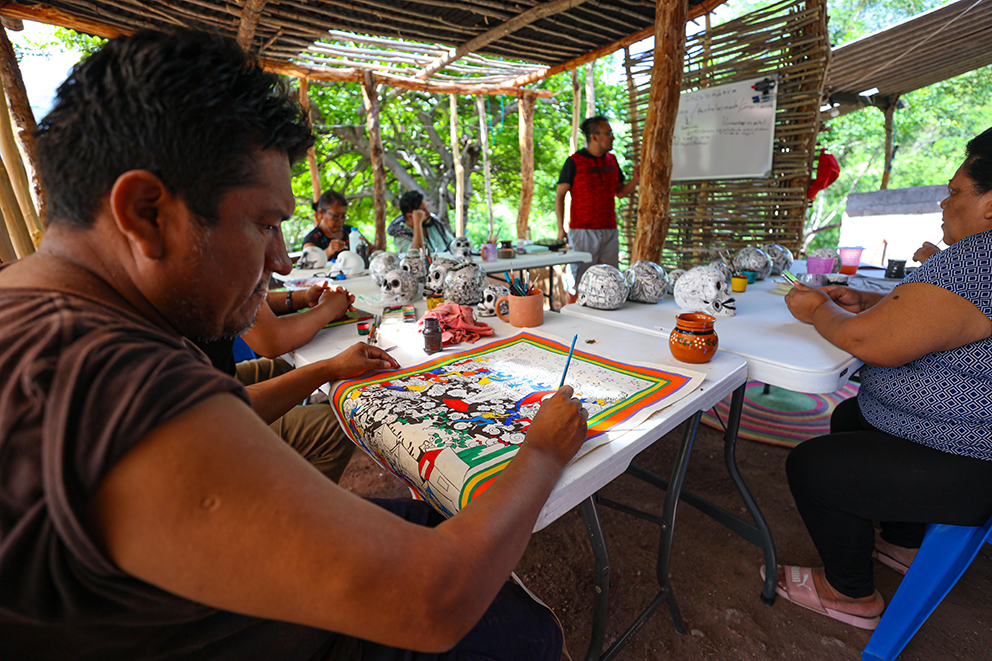 La cooperativa de artistas plásticos Kantemachtlakuillokan (Lugar donde se aprende a pintar) nahua de Xalitla y cooperativa de tejedoras Ñ’omtiuu’ ‘naa welaaya (Memoria de las abuelas), Nnánncue Ñomndaa de Xochistlahuaca; ambas en Guerrero.