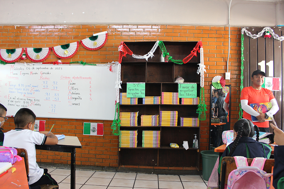 “¿Qué les dijeron de los libros, a ver, por ejemplo en la televisión?”, pregunta el director de la primaria Centauro del Norte en un salón lleno de niñas y niños. Decenas de manos en el salón de quinto se levantan al instante. “Nos dijeron que estaban llenos de errores”, dice una de las alumnas. “Que estaban mal porque ponían familias diferentes”, responde otra.