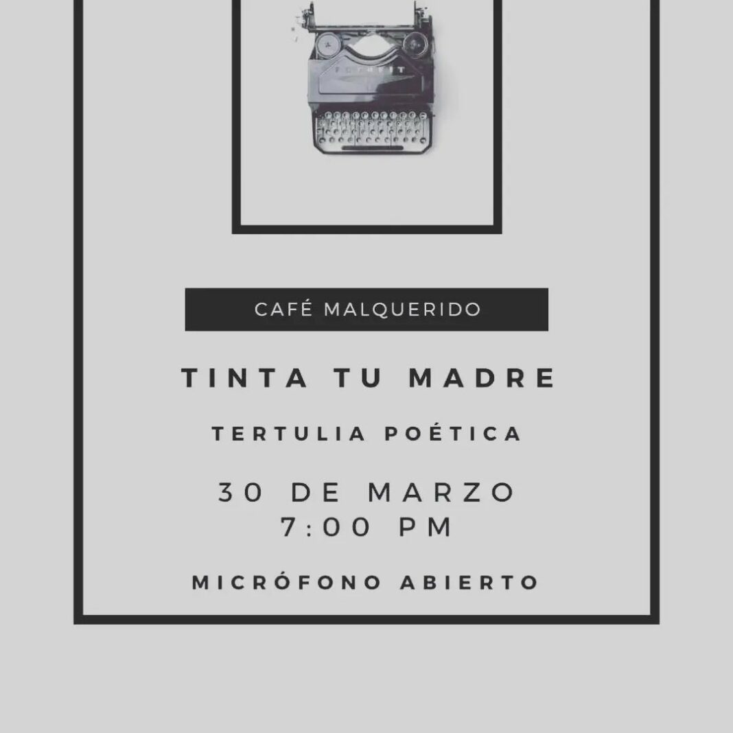 Aníbal comenta que las tertulias presenciales se están llevando a cabo en el Café Malquerido, un espacio que pertenece a un compañero poeta y que se convierte en un lugar para la poesía de izquierda, como una extensión de Tinta tu madre, con la misma técnica que han tenido.