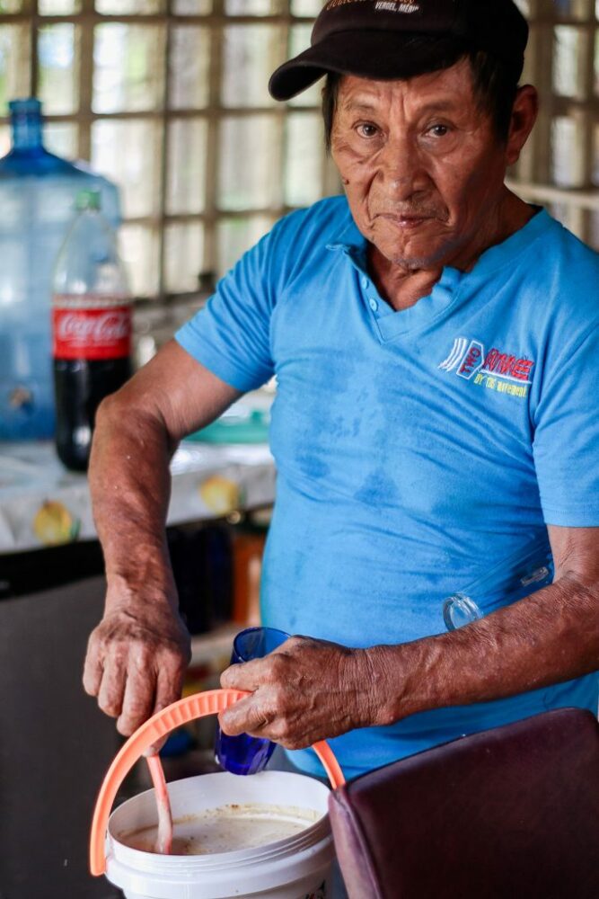 Para este momento, los niños, niñas y jóvenes de Iin Ki Kalante, entre risas y juegos, disfrutan de un descanso en la piscina, mientras esperan a que se sirva el almuerzo. Los hombres que aprendieron a beber mientras miraban a otros hombres hacerlo, observan la escena que se desarrolla cerca de ellos.