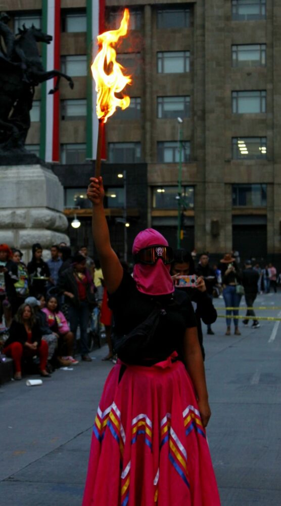 “Las mujeres en resistencia de este país decimos que no hay nada que celebrar en el país de los más de 11 feminicidios al día; no hay nada que celebrar en el país de los más de 100 mil desaparecidos; no hay nada que celebrar en el país donde los militares violan, matan y desaparecen a las personas que supuestamente deben de proteger; no hay nada que celebrar en el país donde se desaparece a 43 estudiantes sin que haya justicia; no hay nada que celebrar en el país en donde las Fiscalías son inservibles, fiscalías que sólo trabajan cuando se trata de perseguir a las mujeres y hombres que luchan; no hay nada que celebrar en el país en donde miles de personas pobres son torturadas en las cárceles para alimentar el negocio empresarial; no hay nada que celebrar en el país en donde se asesina a una periodista por decir la verdad; no hay nada que celebrar en el país en donde las madres escarban la tierra con sus manos para buscar a sus hijos e hijas; no hay nada que celebrar en el país en donde se vende la tierra a los extranjeros; no hay nada que celebrar en el país de la pobreza, de la falta de educación, en el país donde no hay trabajos dignos, en donde no hay salud ni dignidad para el pueblo; no hay nada que celebrar en el país en donde todos los políticos hacen el ridículo a diario mientras miles de personas son asesinadas al día; no hay nada que celebrar en el país donde un macho se hace llamar presidente, se burla cada mañana, mientras que a las mujeres nos acosan, nos violan, nos empobrecen, nos desaparecen y nos asesinan a diario”, así lo denunciaron participantes de la Antigrita 2023.