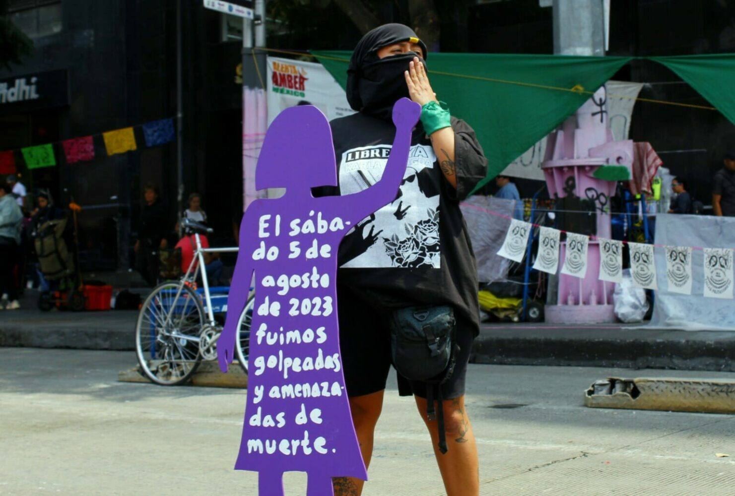Este domingo 17 de septiembre se llevó a cabo la Antigrita feminista 2023 frente al Palacio de Bellas Artes, este acto político artístico cultural fue convocado por la colectiva feminista Libres Ya Comisión por Karla y Magda.