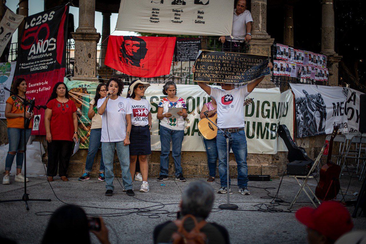 Por fin, al descubierto, se aplaude, se canta y se clama justicia. Aquí en la plaza que alguna vez fue centro de reunión de los vikingos, se conmemoran los 50 años de la fundación de la Liga Comunista 23 de Septiembre y los 58 años del asalto al cuartel de Madera. les recuerdan y les nombran a los ausentes, los que tenían que estar y no estuvieron porque el estado los asesinó o los desapareció. Los nombran los propios sobrevivientes de la represión y la tortura, los recuerdan los que permanecen y aún resisten.