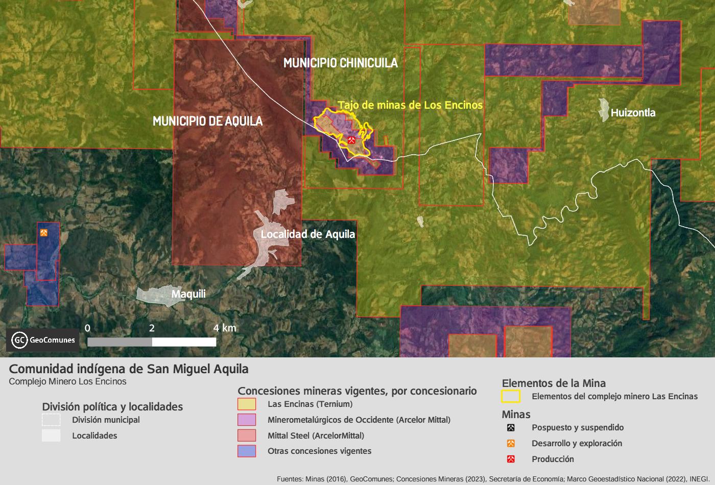 En 2005, la mina El Encino, ubicada en la comunidad agraria de San Miguel Aquila, es adquirida por el Grupo Techint, un conglomerado de empresas ítaloargentino, al cual pertenece Ternium, una de las principales productoras de acero en Latinoamérica.