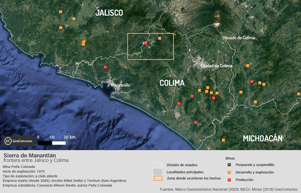 Los ejidatarios de Ayotitlán luchaban por el reconocimiento de su territorio cuando, en 1975, el gobierno mexicano creó el Consorcio Minero Benito Juárez Peña Colorada. La paraestatal abrió la mina Peña Colorada y con ello inauguró la explotación de hierro en la Sierra de Manantlán, específicamente en terrenos ubicados en municipios que son vecinos, pero pertenecen a dos estados diferentes: Cuautitlán de García Barragán, Jalisco, y Minatitlán, Colima.