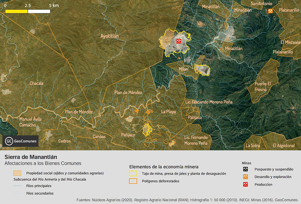 En su informe publicado en 2022, la organización no gubernamental Global Witness señaló: “Las operaciones mineras han impulsado la deforestación, la pérdida de vida silvestre, el cambio climático y la contaminación tóxica… ha sido imposible cuantificar los daños a una verdadera escala, ya que la empresa minera mantiene un estricto control sobre el área de la Sierra de Manantlán”.