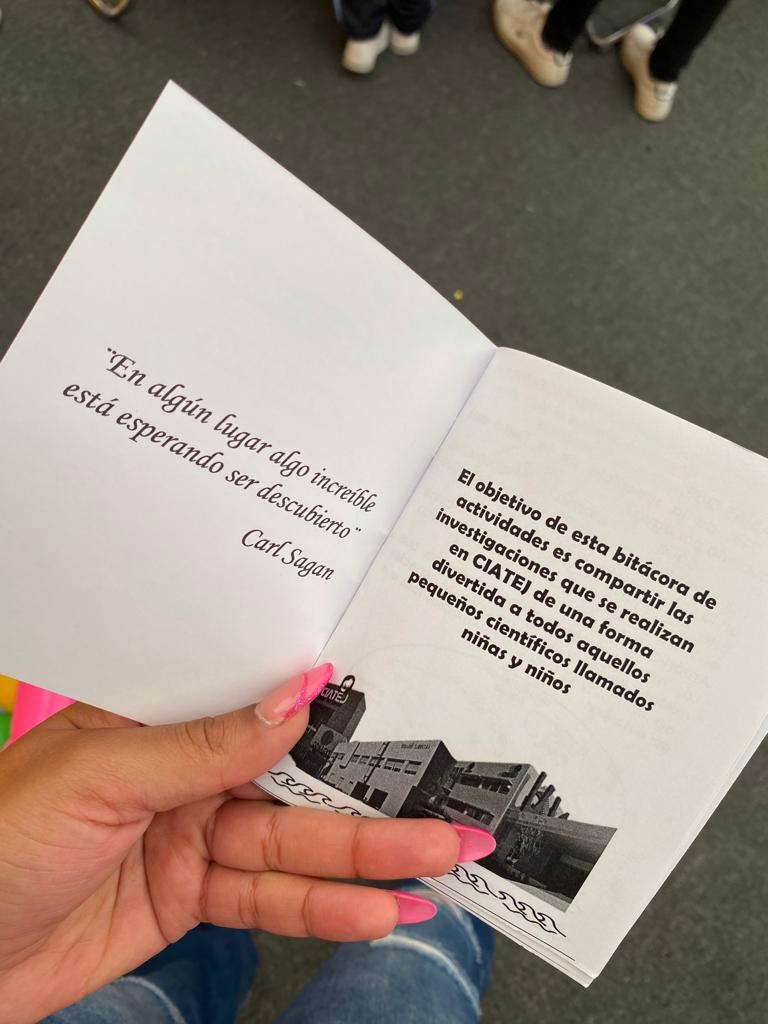 Además, a todos las y los participantes en el taller se les entrega una bitácora científica cuyo objetivo es compartir las investigaciones de CIATEJ de una forma divertida para todas las niñas y niños.